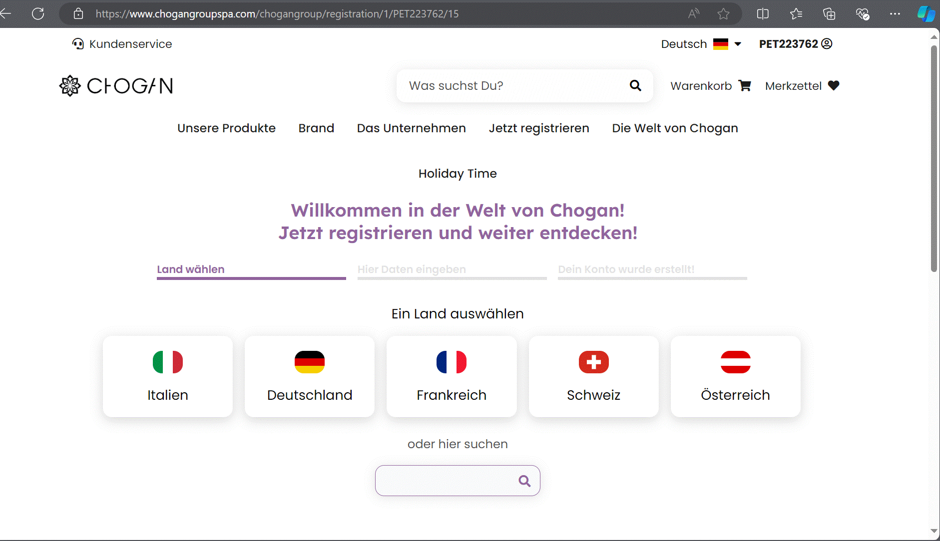 Jetzt Registrieren: https://www.chogangroupspa.com/chogangroup/registration/1/PET223762/15